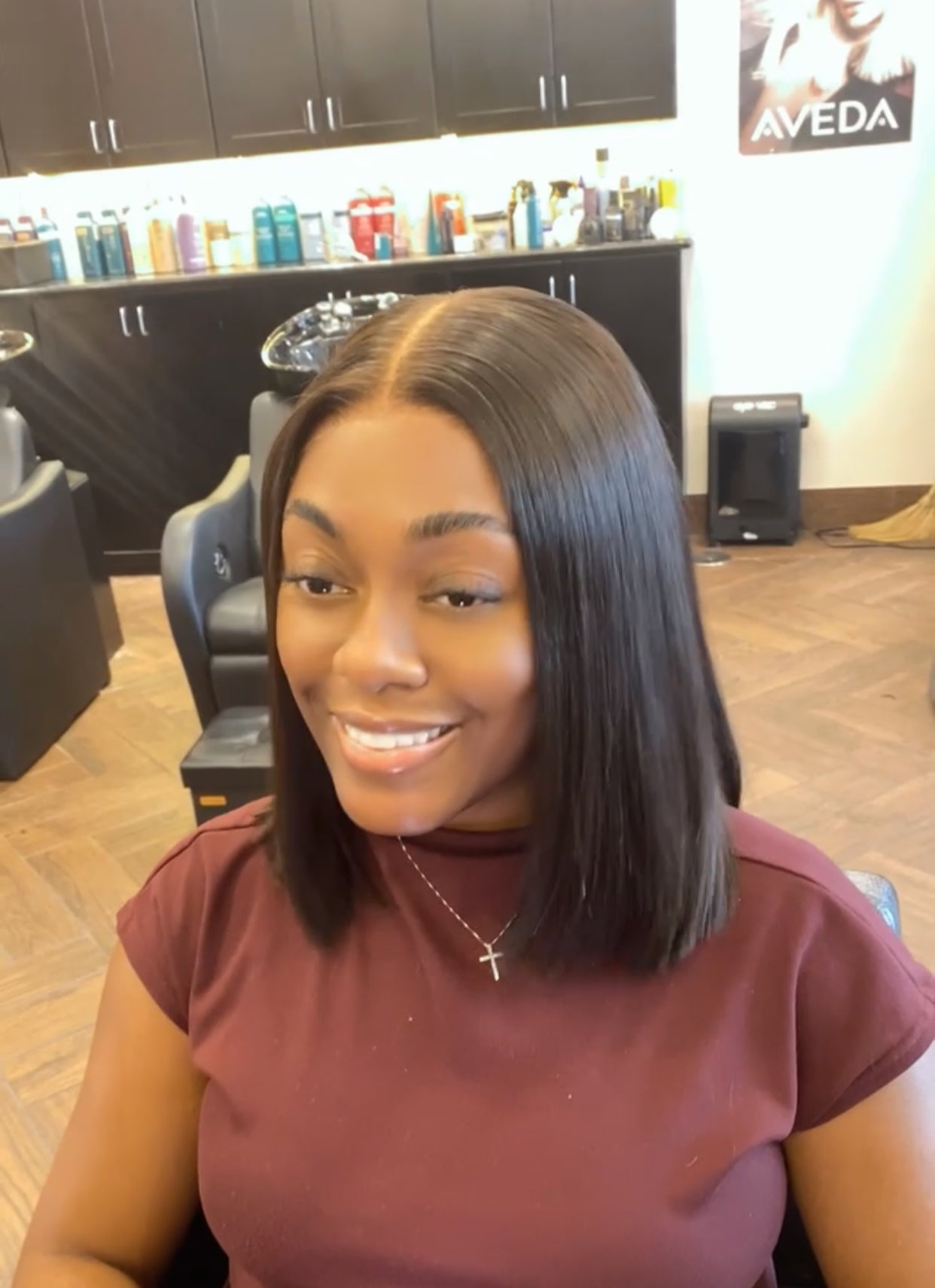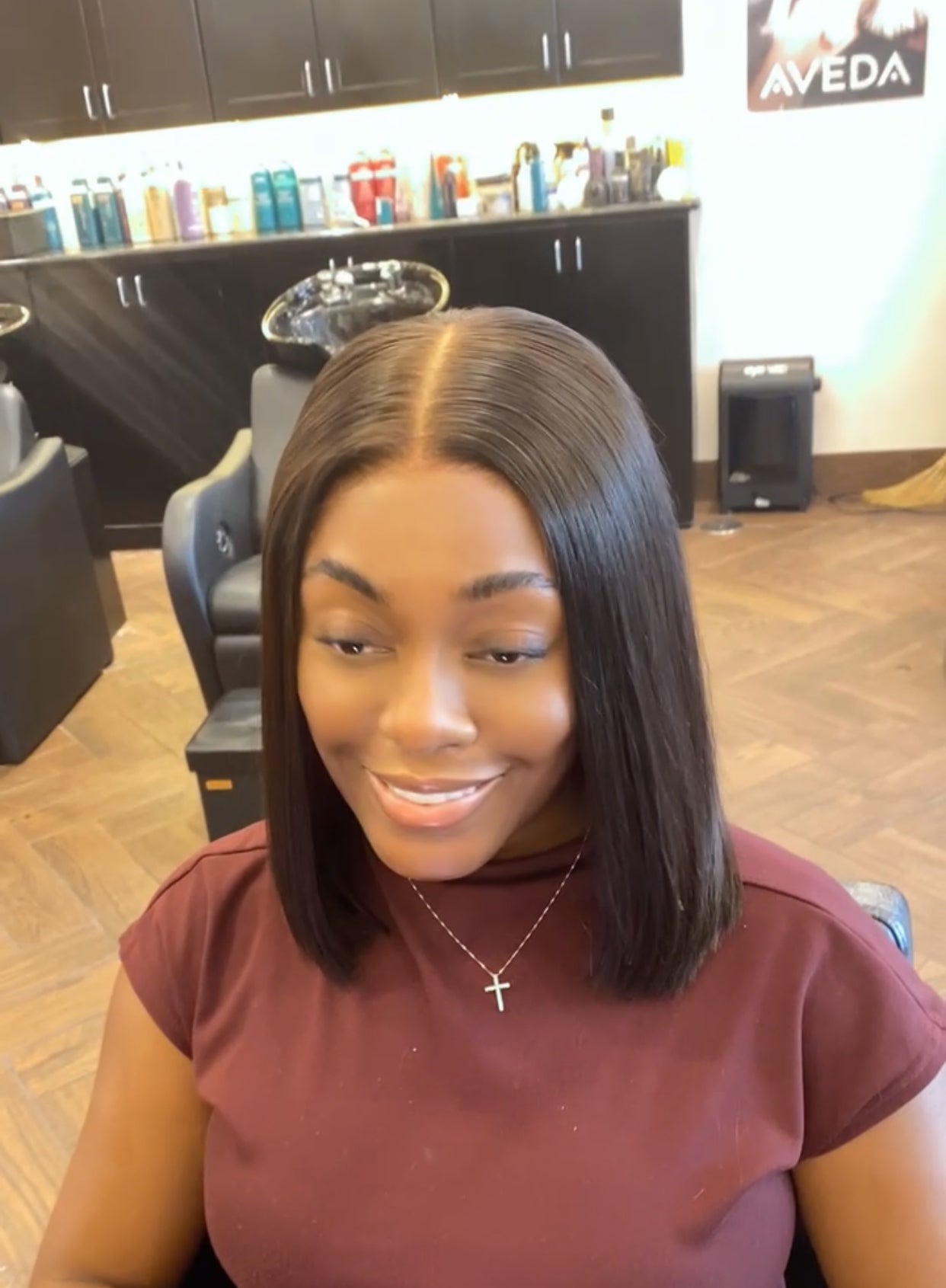 IMPORTANT INFORMATION, PLEASE READ!It is very important to know the circumference of your head measurement because it is needed to know which wig cap size will fit your head. If you are a half a size, its recommended to go up a size.Medium size cap fits most people and you can adjust the elastic band to fit properly, with that being said, Rosuki Hair will not take any responsibility if the cap does not fit right, so you have to know your head measurements. All machine made units are ready to be worn right out of the packaging after makeup (foundation/ lace tint) is used to blend transparent/ HD lace! TURNAROUND: Ships after 7-14 business days ALL SALES ARE FINAL KIM UNIT (BONE STRAIGHT BLUNT CUT) No glue needed Hair length: 8 inches Cap size : small (22-21.5") Construction: machine wefted Customized closure unit. Hair Type: 100% Vietnamese hair Density: 200% 5x5 HD closure Hair color: natural black Hairline: semi pre-plucked Elastic band: YES